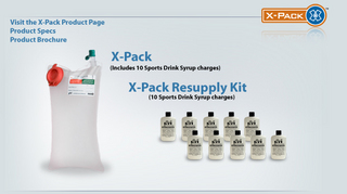 Once charged, the X-Pack will produce 1.75 liters of the equivalent of a sports drink containing about 4% sugar (this compares to Gatorade at 6% and soda pop at 12%) in about 8 hours. Thus, it can be re-filled three times a day and produce a total of over 5 liters of hydrating drink per day.